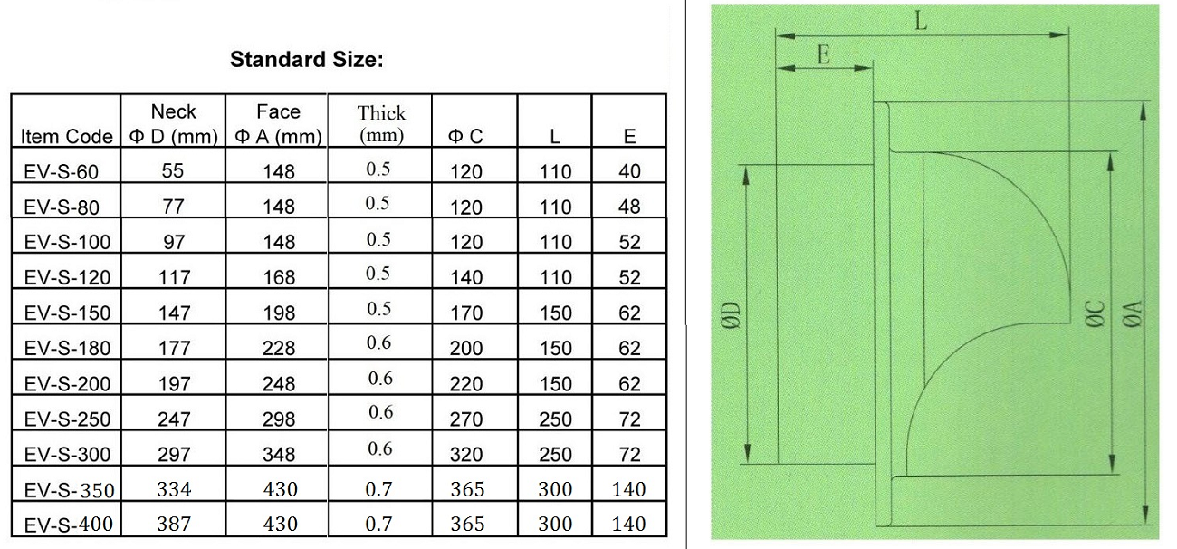 Vent Cap (Circular Outlet) hay còn gọi là Chụp thông hơi là sản phẩm được sử dụng trong các ứng dụng thông gió của các công trình, thông gió cho phòng bếp, phòng tắm và các các vị trí khác của tòa nhà tùy theo nhu cầu sử dụng.