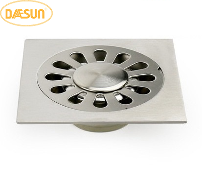 Thoát sàn ngăn mùi inox 10x10cm DAESUN-DS 511. Có lỗ thoát nước cho máy giặt.